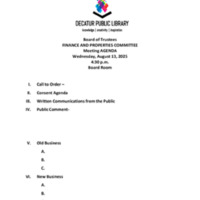 Finance and Properties, “Finance and Properties Committee Meeting Agenda -August 2025,” Decatur Public Library Local History Photo Collection, accessed March 17, 2026, https://omeka.decaturlibrary.org/items/show/9840.