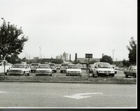 Photograph of the Decatur Civic Center Parking Lot and automobiles. The Civic Center was dedicated on Saturday, November 15, 1980.