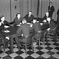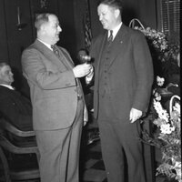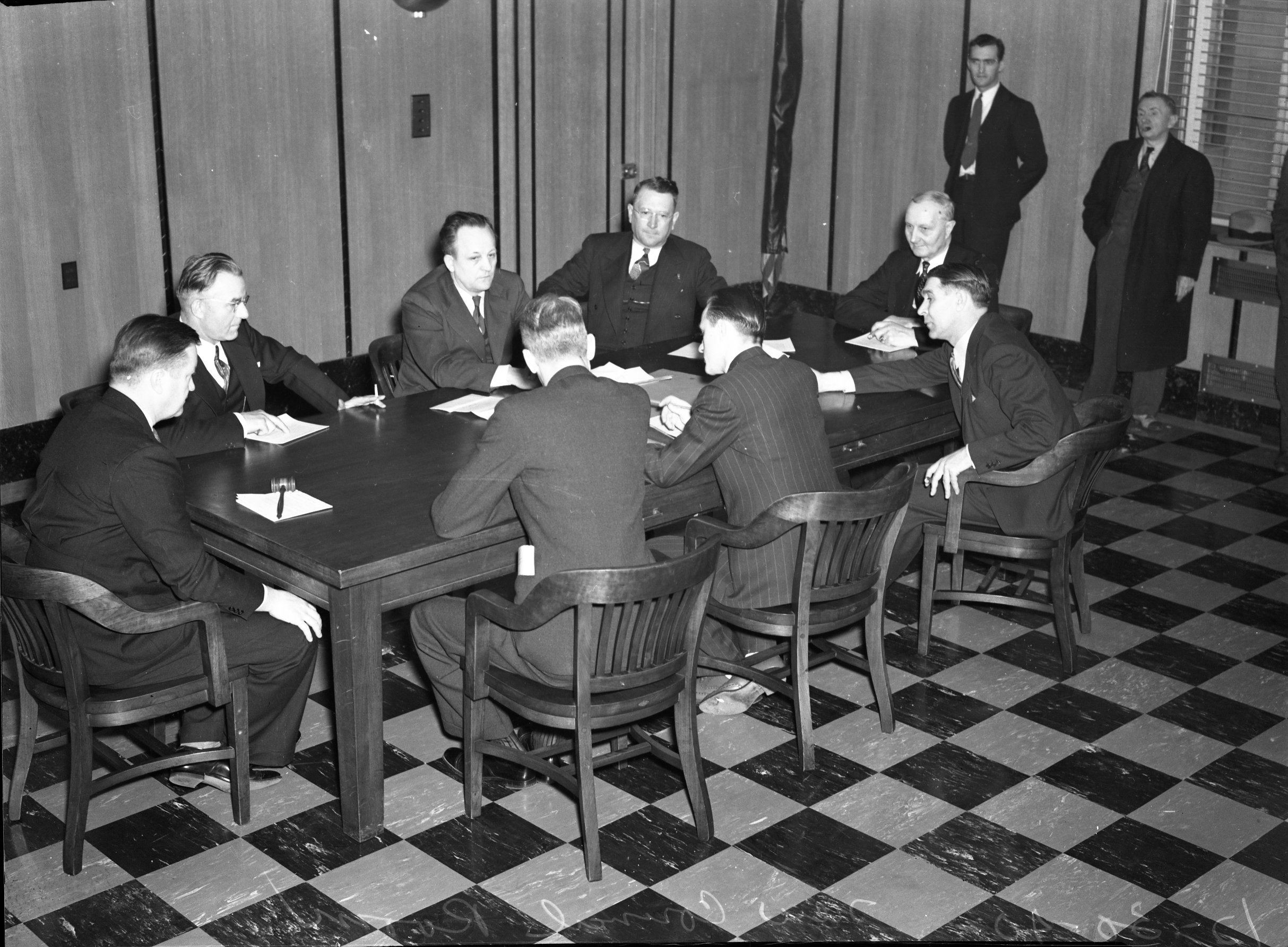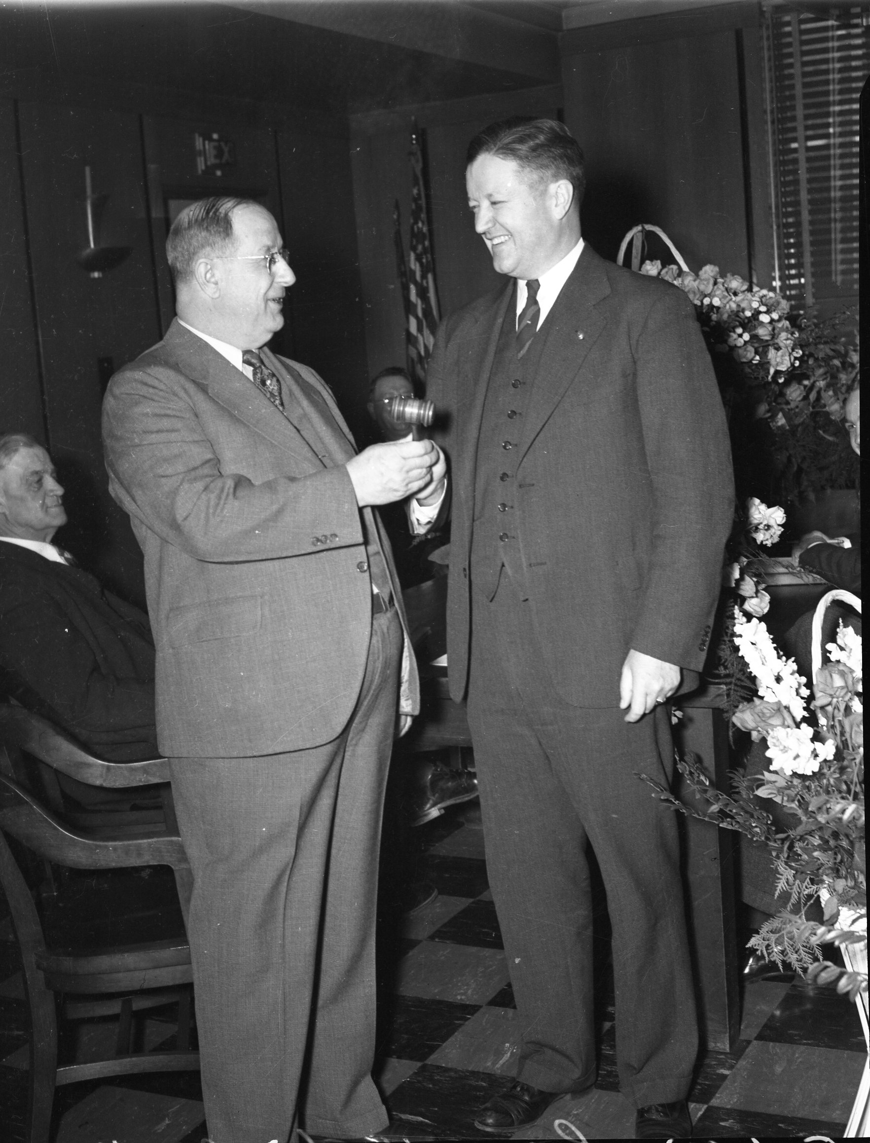Photograph of Passing the Gavel, 5/1/1940. Photograph of City Council Meeting in new council room, 12/30/1940.