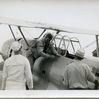 Malone Family, Collection, Photographs, George getting out of a plane at the Decatur Airport